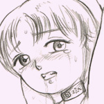 たぶん2000年以前のラクガキ。首輪をつけられ腕を吊られてこれから何かされそうな少女。股間の剃り跡が生々しいです。