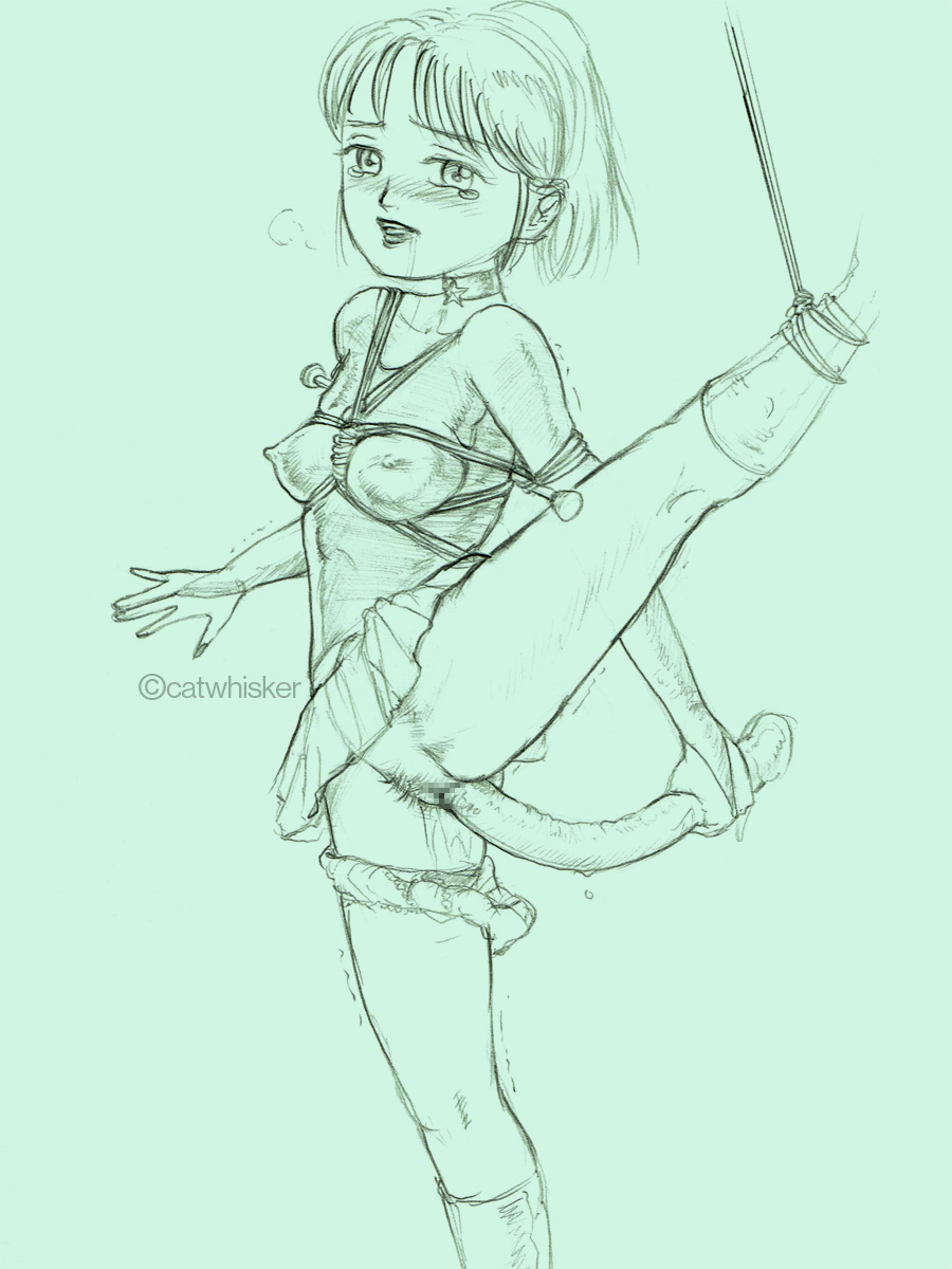 1990年代のラクガキ。バトントワラー緊縛の図。ロングディルドを自ら突き上げて、うれしそうです。